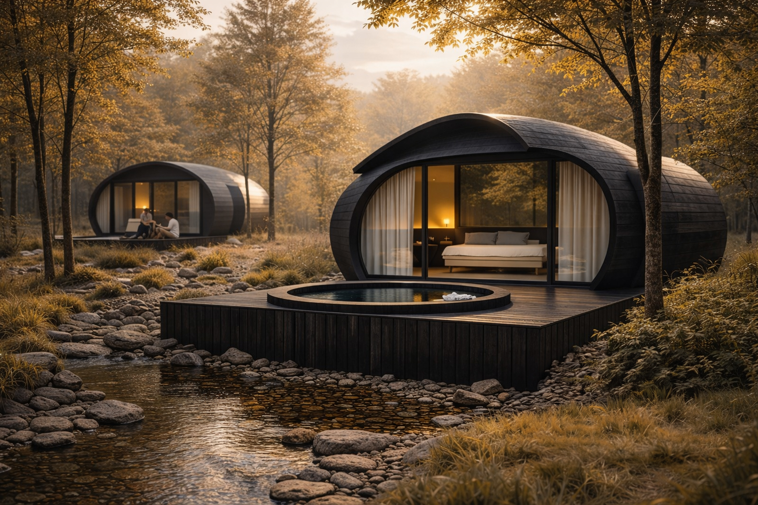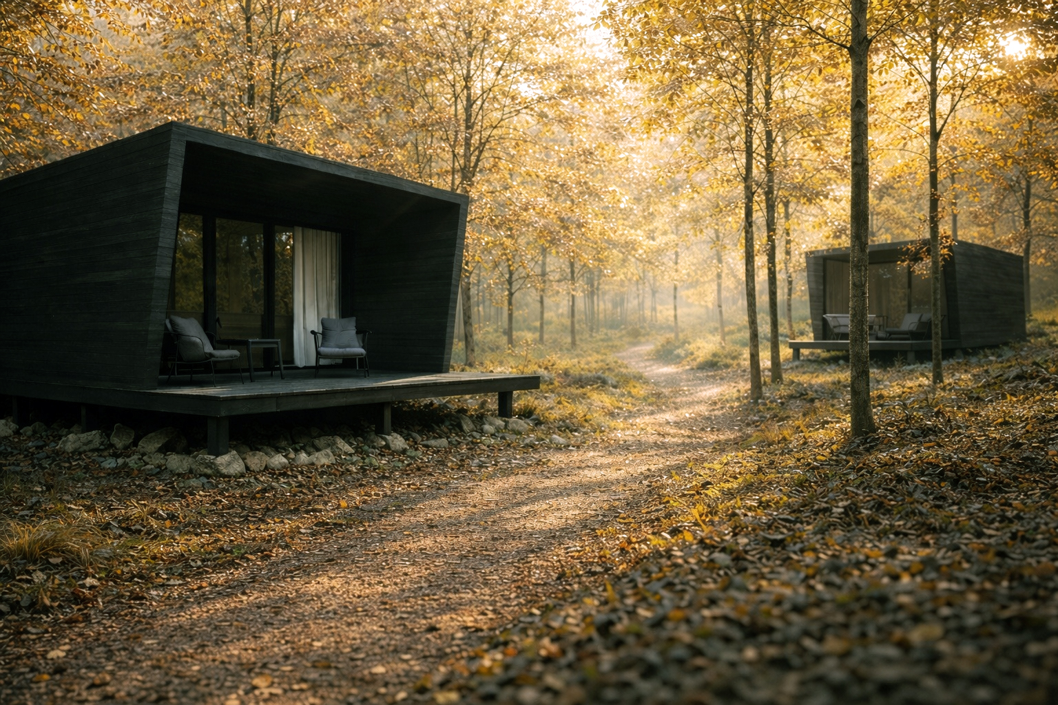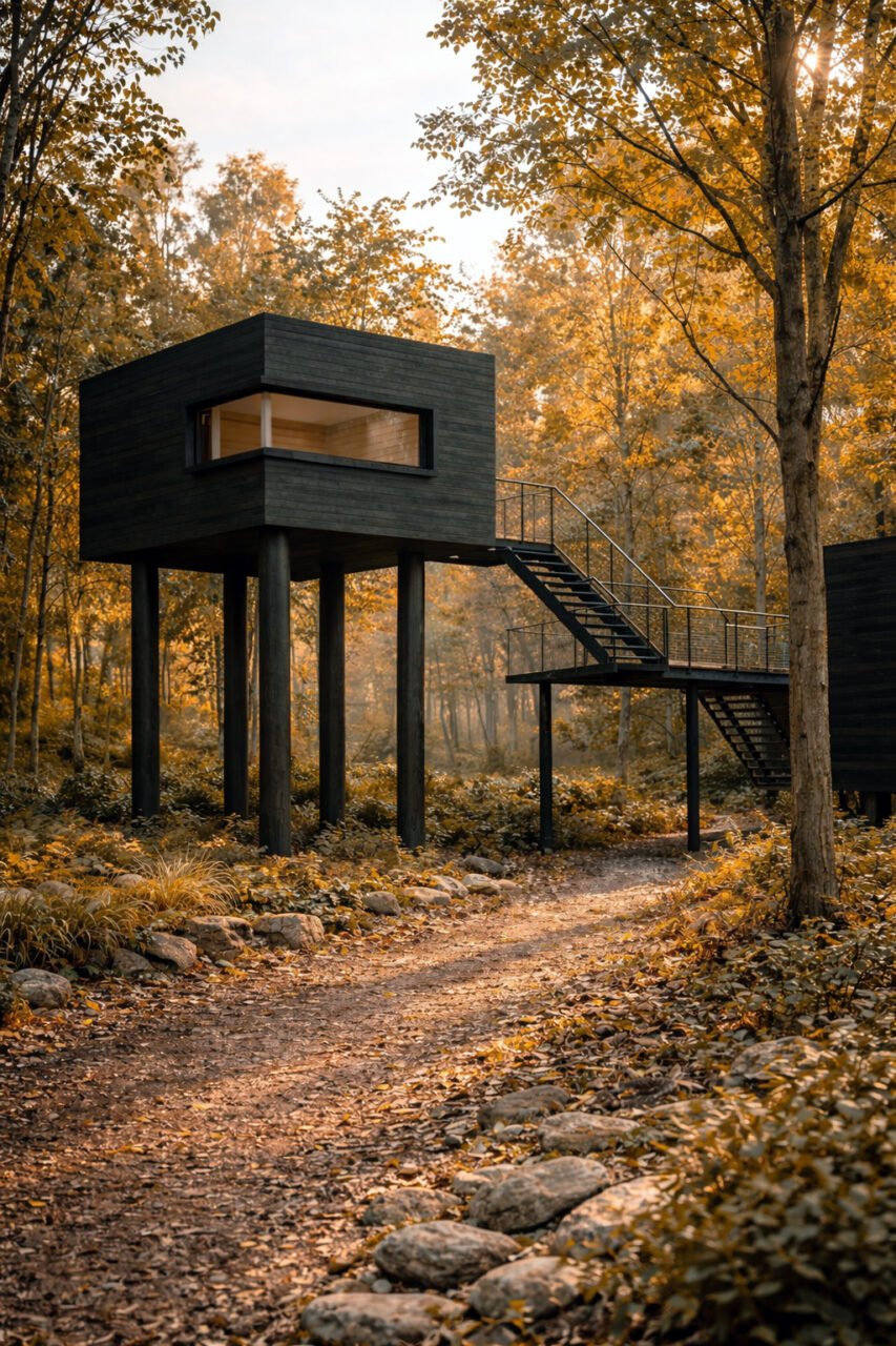 All building units were conceived as lightweight interventions and designed exclusively using natural materials, including western cedar and rammed earth, reinforcing the project’s low-impact ethos and its deep connection to the landscape.