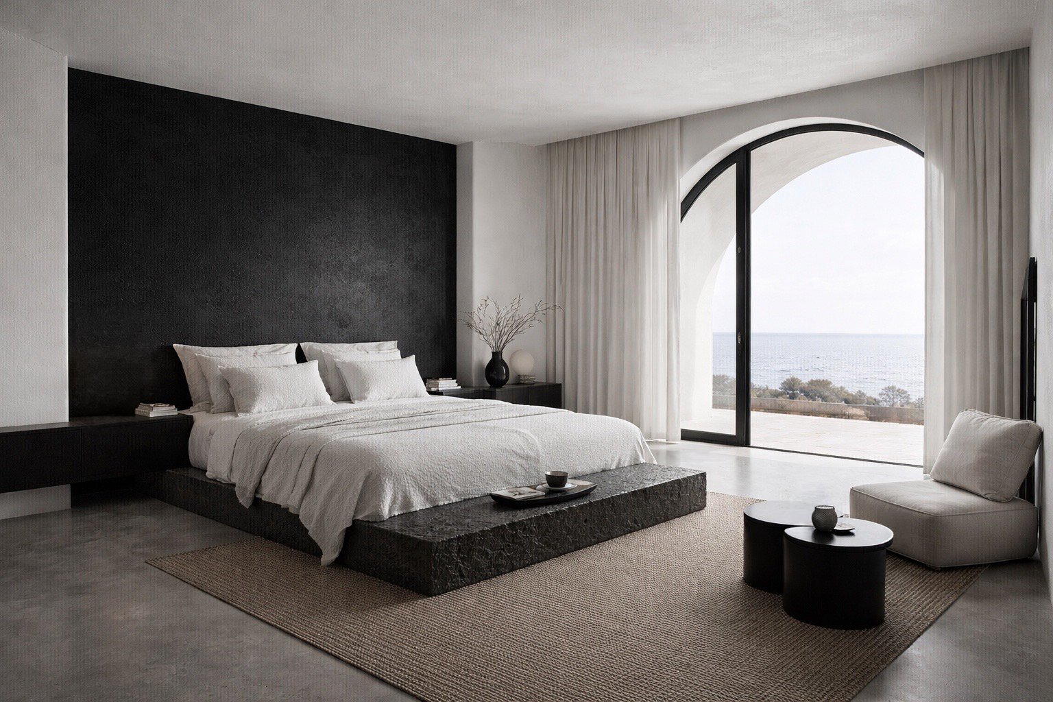Set within a powerful, almost scene-stealing landscape, the design seeks not to compete but to harmonize. Through restrained geometry, softened edges and a disciplined material palette, the residence aspires to infuse serenity, balance and purity into every spatial experience—allowing architecture and horizon to coexist in quiet equilibrium.