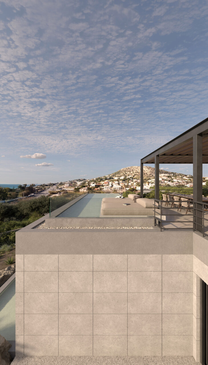 Perched on a slope of Anavyssos, only a few meters from the legendary former Onassis residence, the private resdidence unfolds as a contemporary retreat deeply rooted in the Attic landscape.