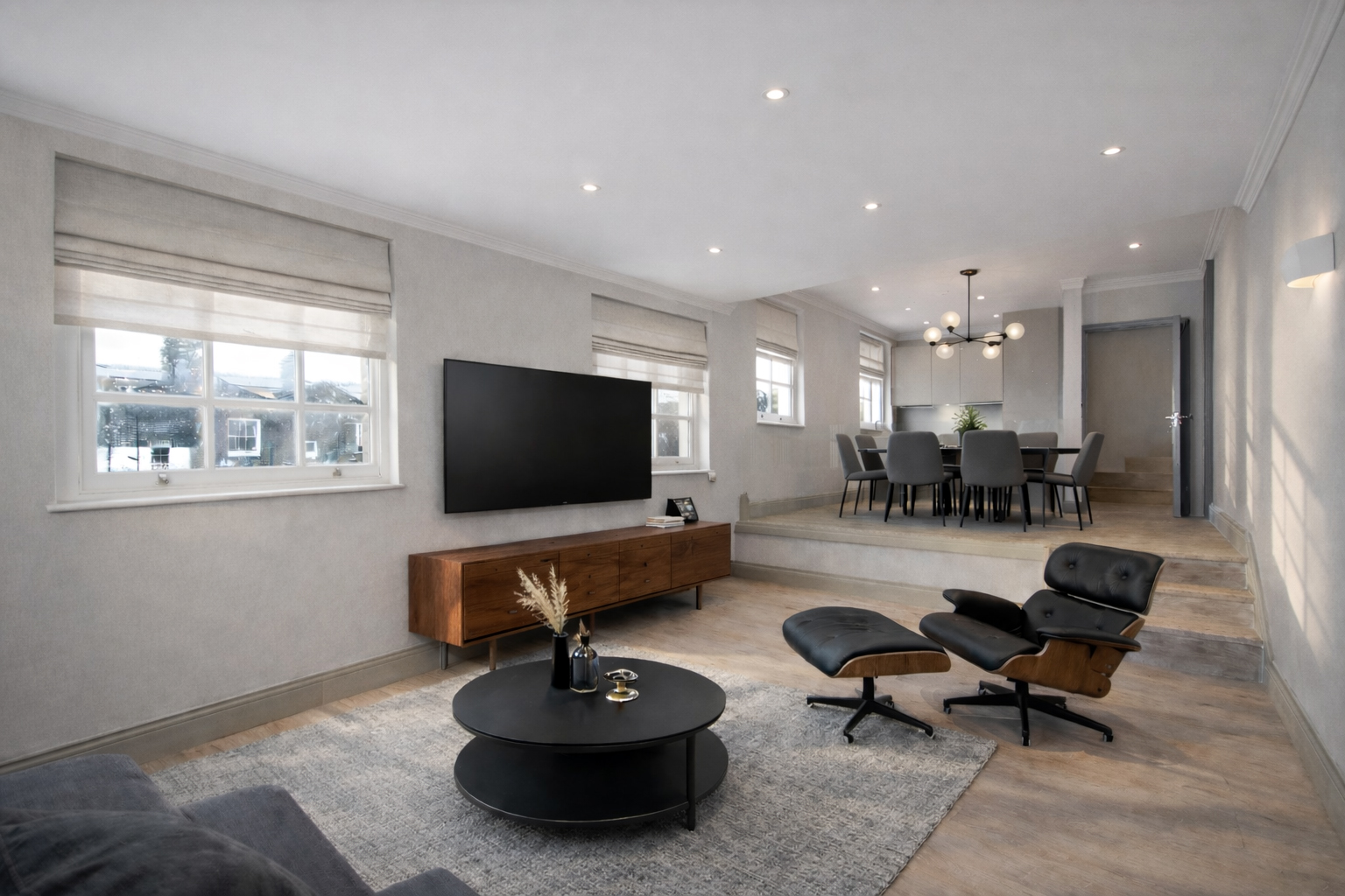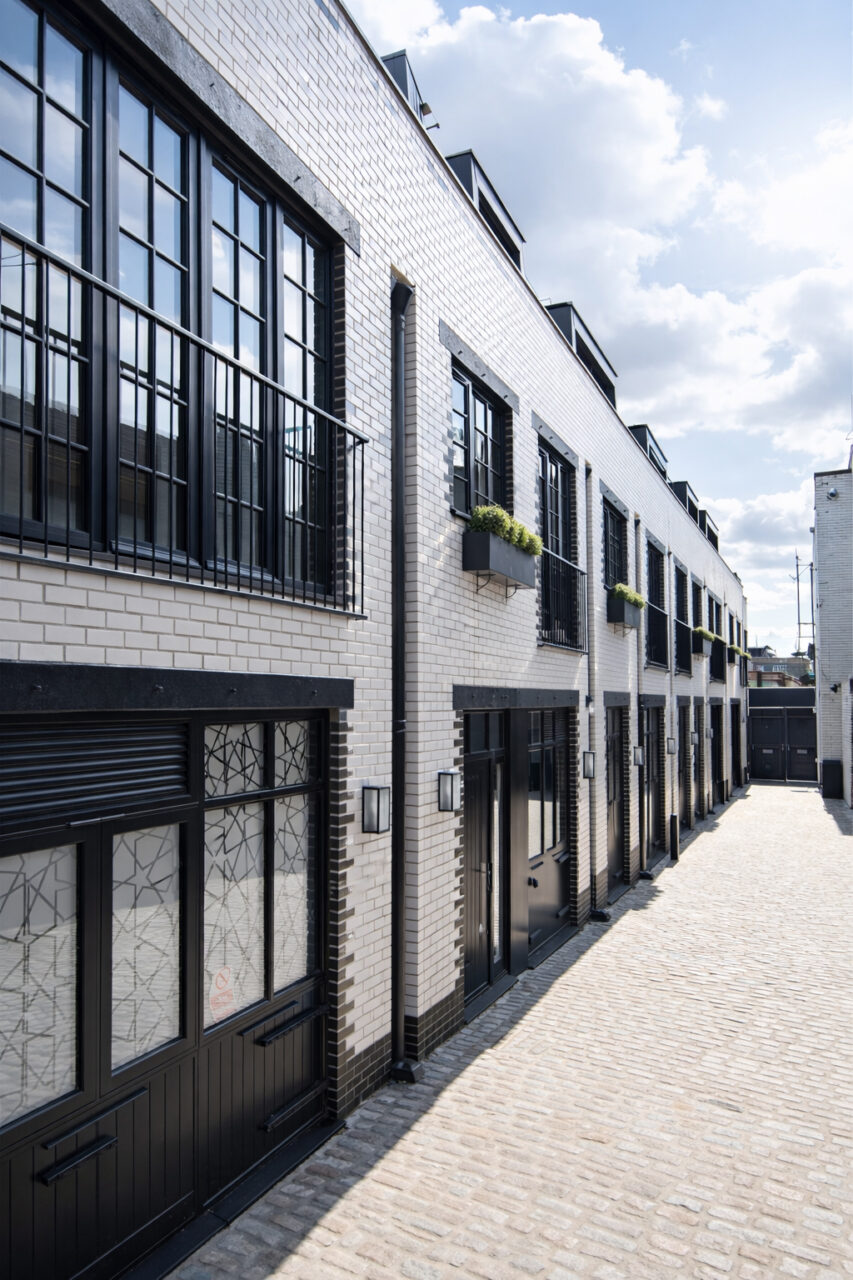 The shop is accessible from the High street, while the entrance to the flats is located at the end of the mews, through a cosy courtyard. The project included the restoration of the ground floor store, the refurbishment and extension of the building above and a brand new building towards the mews, which connects to the existing building through a communal courtyard on the first level.