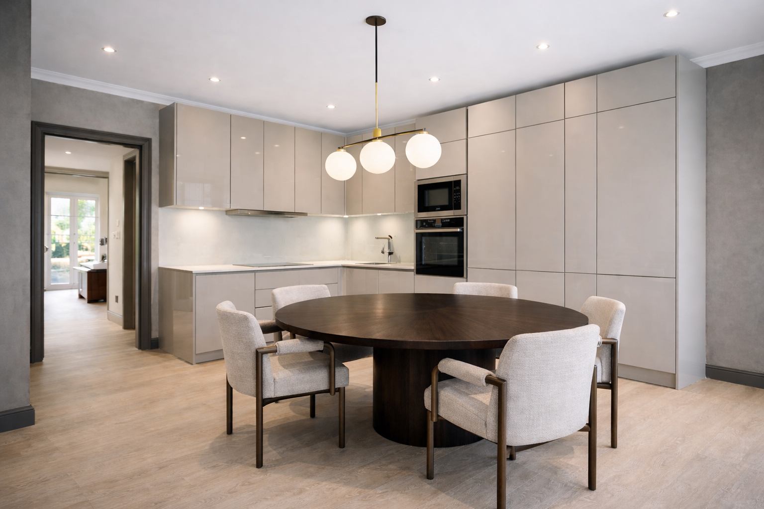 White , off-white and grey colors are used across all surfaces, while the layouts of the flats are linear with large window openings allowing as much daylight as possible.