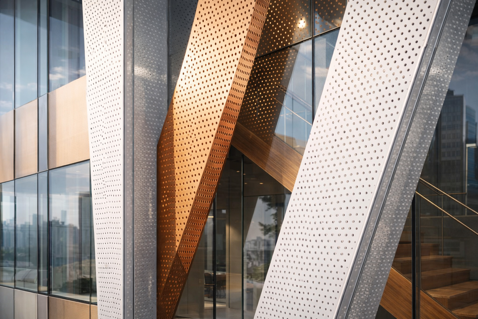 Conceived as the headquarters of a tech innovation company in Nicosia, Cyprus, the project seeks to re-establish a meaningful connection between its users and the natural world, while fostering a healthy, productive working environment. This ambition is expressed not only internally, but also outwardly, through a distinctive façade composed of tree-like perforated aluminium screens and a large-scale central green atrium that acts as the spatial and environmental heart of the building.